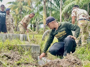 เมื่อวันที่ 21 พฤษภาคม 2567 หน่วยเฉพาะกิจกรมทหารพรานที่ 42 จัดกำลังพลชุดช่างของกองร้อยทหารพรานที่ 4215 พร้อมด้วย ชุดช่างอาสารักษาดินแดนชุดคุ้มครองตำบลน้ำบ่อ ร่วมกับ ผู้นำท้องที่ เข้าให้ความช่วยเหลือดำเนินการสร้างห้องน้ำให้กับครอบครัวของ นายซาซีดี เจ๊ะดอเล๊าะ อายุ 53 ปี อาศัยอยู่ ณ บ้านเลขที่ 8/3 หมู่ที่ 4 บ้านแฆแฆ ตำบลบ้านน้ำบ่อ อำเภอปะนาเระ จังหวัดปัตตานี ซึ่งเป็นผู้ยากไร้ในพื้นที่ เพื่อบรรเทาความเดือดร้อนให้กับพี่น้องประชาชนที่มีฐานะยากจน และด้อยโอกาส ตลอดจนยกระดับคุณภาพชีวิตให้มีความสะดวกสบายมากขึ้น มีสุขภาพดี อีกทั้งยังเป็นการเสริมสร้างความสัมพันธ์ที่ดีระหว่างเจ้าหน้าที่รัฐและประชาชน รวมทั้งยังเป็นการสร้างขวัญและกำลังใจในการดำเนินชีวิตต่อไป