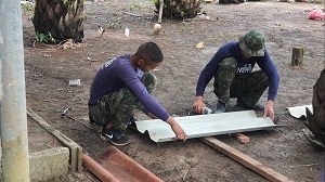 วันที่ 22 พฤษภาคม 2567 เวลา 09.00 น. หน่วยเฉพาะกิจนาวิกโยธิน กองทัพเรือ / หน่วยเฉพาะกิจนาวิกโยธินภาคใต้ โดย ร้อยปืนเล็กที่ 4 หน่วยเฉพาะกิจนาวิกโยธิน กองทัพเรือ 33 จัดกำลังพลเข้าช่วยเหลือ ซ่อมแซมหลังคาบ้านและต่อเติมชายคาให้กับ นางสาวนาตือเราะ อาแว ประชาชนผู้ยากไร้ ณ บ้านเลขที่ 75 บ้านปูโปะ หมูที่ 4 ตำบลมูโนะ อำเภอสุไหงโก-ลก จังหวัดนราธิวาส ซึ่งหลังคาของเดิมชำรุด จึงดำเนินการเปลี่ยนให้ใหม่ในส่วนที่ชำรุดและทำการต่อเติมกันสาดหน้าบ้านให้กับประชาชน ด้านนางสาวนาตือเราะได้กล่าวขอบคุณและภูมิใจที่เจ้าหน้าทหารไม่ทอดทิ้งประชาชน