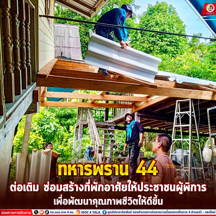 เมื่อวันที่ 22 พฤษภาคม 2567 หน่วยเฉพาะกิจกรมทหารพรานที่ 44 จัดกำลังพลชุดปฏิบัติการเสริมสร้างความเข้าใจ ร่วมกับ เจ้าหน้าที่ชุดคุ้มครองตำบลทุ่งคล้า ลงพื้นที่ไปยังหมู่ที่ 1 บ้านหัวนา ตำบลทุ่งคล้า อำเภอสายบุรี จังหวัดปัตตานี ดำเนินการสร้าง ต่อเติมบ้านพักอาศัยให้กับประชาชนผู้พิการ ซึ่งเป็นผู้ที่ได้รับผลกระทบจากเหตุการณ์ความรุนแรงในพื้นที่จังหวัดชายแดนภาคใต้ เพื่อเป็นการช่วยเหลือ และบรรเทาความเดือดร้อนให้กับพี่น้องประชาชนในพื้นที่รับผิดชอบของหน่วย