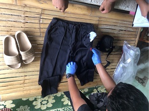 โดยเจ้าหน้าที่ได้ดำเนินการเข้าตรวจสอบบ้านเลขที่ 22/1 หมู่ที่ 9 ตำบลเกาะสะท้อน อำเภอตากใบ จังหวัดนราธิวาส พบ นายฟักรูลเลาะห์ เต๊ะแม แสดงตนเป็นเจ้าของบ้านและเป็นผู้นำตรวจค้น ร่วมกับเจ้าหน้าที่ตรวจสอบ ภายในบ้านพักและบริเวณโดยรอบ จากการตรวจสอบบ้านหลังดังกล่าว เจ้าหน้าที่ได้ทำการตรวจยึดวัตถุพยานทั้งสิ้น จำนวน 5 รายการ และ ได้เชิญตัวไปยังศูนย์ซักถาม หน่วยเฉพาะกิจกรมทหารพรานที่ 46 เพื่อดำเนินกรรมวิธีซักถามและขยายผล รายละเอียดความคืบหน้าจะรายงานให้ทราบต่อไป