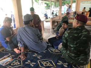 จากนั้น ชุดสันติสุขที่ 102 หน่วยเฉพาะกิจสันติสุข ร่วมกับ ชุดทักษิณสัมพันธ์ที่ 111 ลงพื้นที่ไปมัสยิดนูรุดดีน บ้านนาพร้าว ตำบลปะนาเระ อำเภอปะนาเระ จังหวัดปัตตานี พบปะประชาชนหลังละหมาดวันศุกร์ เพื่อประชาสัมพันธ์เกี่ยวกับโรคที่มากับยุงลาย รวมถึงวิธีการป้องกัน และให้บริการทางการแพทย์ให้กับประชาชนในเบื้องต้น ตลอดจนเป็นการสานสัมพันธ์อันดีระหว่างเจ้าหน้าที่และประชาชนในพื้นที่ เพราะทหารจะอยู่เคียงข้างและดูแลประชาชนในทุกโอกาส