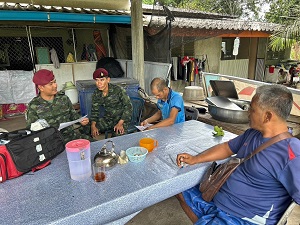 วันที่ 24 พฤษภาคม 2567 ที่ร้านน้ำชา บ้านตาแปด ตำบลปากบาง อำเภอเทพา จังหวัดสงขลาชุดสันติสุขที่ 502 หน่วยเฉพาะกิจสันติสุข ร่วมกับ ชุดทักษิณสัมพันธ์ที่ 552 ดำเนินกิจกรรมหมอเดินเท้าเข้าชุมชน เพื่อให้บริการทางการแพทย์ พร้อมทั้งมอบเวชภัณฑ์ยารักษาโรค และแจกแผ่นผับรณรงค์ เรื่อง โรคที่มากับฝน เพื่อให้ประชาชนสามารถดูแลตนเองได้ในเบื้องต้น