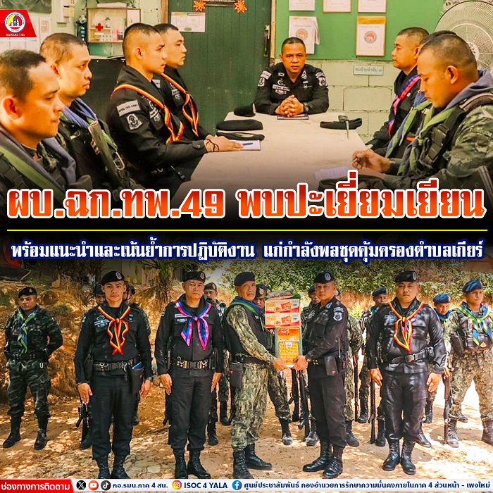 ทั้งนี้ ผู้บังคับหน่วยเฉพาะกิจกรมทหารพรานที่ 49 ได้มอบสิ่งของอุปโภคบริโภค เพื่อเป็นขวัญและกำลังใจในการปฏิบัติหน้าที่ต่อไป