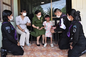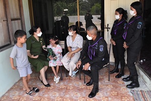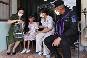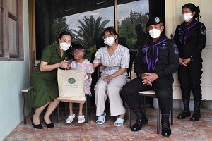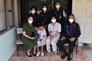 ทั้งนี้ การพบปะเยี่ยมเยียนดังกล่าว ผู้บังคับหน่วยเฉพาะกิจกรมทหารพรานที่ 44 พร้อมด้วย ประธานสมาคมแม่บ้านทหารบก สาขากรมทหารพรานที่ 44 ได้มอบตุ๊กตาผ้า ซึ่งเป็นผลิตภัณฑ์ของกลุ่มแม่บ้านทหารบก และสิ่งของเครื่องอุปโภคบริโภค พร้อมทั้งเงินช่วยเหลือ ให้กับบุตรที่มีความต้องการพิเศษของกำลังพล เพื่อเป็นการช่วยเหลือ และบรรเทาความเดือดร้อนเบื้องต้นในการดำเนินชีวิต “เพราะเรา คือ ครอบครัวเดียวกัน”