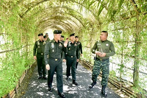 จากนั้น พลเอก ประยุกต์ อุ่นอบ เดินทางไปยัง โครงการทหารพันธุ์ดี และศูนย์ผลิตพันธุ์ไก่เบตงพระราชทาน “เพื่อนช่วยเพื่อน” ภาคใต้ตอนล่าง ของกองพันธุ์ทหารช่างที่ 15 กองพลทหารราบที่ 15 ซึ่งกองพลทหารราบที่ 15 ค่ายสมเด็จพระสุริโยทัย ตำบลบ่อทอง อำเภอหนองจิก จังหวัดปัตตานี โดยได้ตรวจเยี่ยมการดำเนินงานภายในโครงการฯ และรับฟังสรุปคำบรรยายการดำเนินงานที่สำคัญในห้วงที่ผ่าน พร้อมทั้งให้คำแนะนำวิธีดำเนินการโครงการทหารพันธุ์ดี ซึ่งเป็นโครงการนำประโยชน์ให้แก่ทหาร โดยแท้จริงที่ให้องค์ความรู้ด้านการทำเกษตรอินทรีย์ การปลูกผักปลอดสารพิษ การทำปศุสัตว์ และเป็นการสร้างเกษตรกรต้นแบบในอนาคต เพื่อให้สามารถขยายผลไปสู่กำลังพล ครอบครัว และประชาชนทั่วไปในพื้นที่รับผิดชอบต่อไป