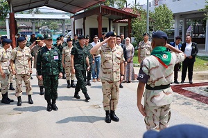 นายกองใหญ่ อนุทิน ชาญวีรกูล รองนายกรัฐมนตรีและรัฐมนตรีว่าการกระทรวงมหาดไทยในฐานะผู้บัญชาการกองอาสารักษาดินแดน กล่าวว่า เรารู้ทุกคนที่ปฏิบัติงานอยู่ในพื้นที่เป็นผู้เสียสละ เมื่อช่วงเช้าที่ผ่านมา จึงได้เดินทางไปเยี่ยมผู้ได้รับบาดเจ็บจากสถานการณ์ที่เกิดขึ้น พร้อมหารือ แนวทางการช่วยเหลือ สวัสดิการด้านต่าง ๆ เพื่อเยียวยาให้กับครอบครัวผู้ได้รับบาดเจ็บจากเหตุการณ์ที่เกิดขึ้น ซึ่งที่ผ่านมา นายเศรษฐา ทวีสิน นายกรัฐมนตรี คณะผู้บังคับบัญชา ได้ติดตามการทำงานของหน่วยในพื้นที่มาอย่างต่อเนื่อง และมีความกังวลต่อสถานการณ์ที่เกิดขึ้น วันนี้จึงได้นำความห่วงใยของท่านนายกรัฐมนตรี โดยกระทรวงมหาดไทยและกองทัพบก ลงมาเยี่ยมให้กำลังใจพี่น้อง อส. ที่เข้ารับการฝึกเสริมสร้างขีดความสามารถสมาชิกกองอาสารักษาดินแดนจังหวัดชายแดนภาคใต้ ชุดแรกเป็นวันสุดท้าย วันนี้ได้เห็นถึงศักยภาพความสามารถ ความมุ่งมั่นตั้งใจที่เหล่า อส. ทุกท่านได้รับการฝึก ซึ่งต้องขอขอบคุณ กองทัพบก / กองอำนวยการรักษาความมั่นคงภายในภาค 4 ส่วนหน้า ที่ให้การสนับสนุนให้การฝึกในครั้งนี้ หวังว่าหลังจากนี้ พี่น้อง อส. จะมีความเข้มแข็ง ไม่ประมาท มีความรอบคอบ มีทัศนคติที่ดี นำสิ่งที่เรียนรู้มาปฏิบัติหน้าที่อย่างมีประสิทธิภาพ ขอให้เราทุกคนผนึกกำลังกันทำงานดูแลความปลอดภัย สร้างความเชื่อมั่นให้กับพี่น้องประชาชน และเป็นความภาคภูมิใจให้กับประเทศชาติต่อไป
