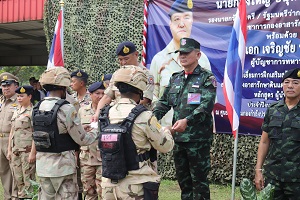 ต่อมา เวลา 14.20 น. รองนายกรัฐมนตรีและคณะ เดินทางต่อมาที่ ศูนย์ฝึกอบรมกองกำลังประจำถิ่นท่าสาป อำเภอเมือง จังหวัดยะลา ตรวจเยี่ยมติดตามการฝึกผู้นำสมาชิกกองอาสารักษาดินแดนจังหวัดชายแดนภาคใต้ ประจำปี 2567 ที่เข้าสู่ห้วงการฝึกภาคสนามในสัปดาห์ที่ 3 เป็นวันสุดท้าย ก่อนรับฟังบรรยายสรุปการฝึกในห้วงที่ผ่านมา, รับชมการฝึกทบทวนการยิงปืนด้วยกระสุนจริง ของกองกำลังอาสารักษาดินแดนจังหวัดชายแดนภาคใต้ ในโอกาสนี้รองนายกรัฐมนตรีและผู้บัญชาการทหารบก ร่วมลงสนามทดสอบการฝึกยิงปืนด้วย พร้อมมอบของอุปโภคบริโภค และรางวัลเพื่อเป็นขวัญกำลังใจให้สมาชิกกองอาสารักษาดินแดนจังหวัดชายแดนภาคใต้