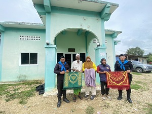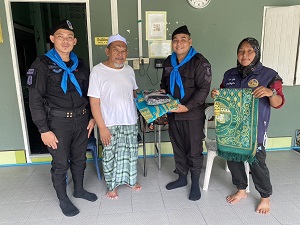 วันที่ 3 มิถุนายน 2567 หน่วยเฉพาะกิจกรมทหารพรานที่ 41 จัดกำลังพล กองร้อยทหารพรานที่ 4109 ร่วมกับ ผู้นำท้องที่ ลงพื้นที่ไปยังมัสยิดซีรอฎลยันนะห์ดาแลกือบน หมู่ที่ 4 ตำบลจะกว๊ะ อำเภอรามัน จังหวัดยะลา เพื่อพบปะเยี่ยมเยียนสานสัมพันธ์กับผู้นำศาสนาในพื้นที่ พร้อมทั้งมอบพรมปูละหมาดและผ้าละหมาดสำหรับใช้ในการปฏิบัติศาสนกิจของชาวไทยมุสลิม โดยกองร้อยทหารพรานที่ 4109 สนับสนุนพรมปูละหมาดและผ้าละหมาดในครั้งนี้ต้องการให้พี่น้องชาวไทยที่นับถือศาสนาอิสลามได้ประกอบศาสนกิจตามความศรัทธา และสร้างสังคมพหุวัฒนธรรมที่หลากหลายในพื้นที่จังหวัดชายแดนภาคใต้อย่างยั่งยืนต่อไป