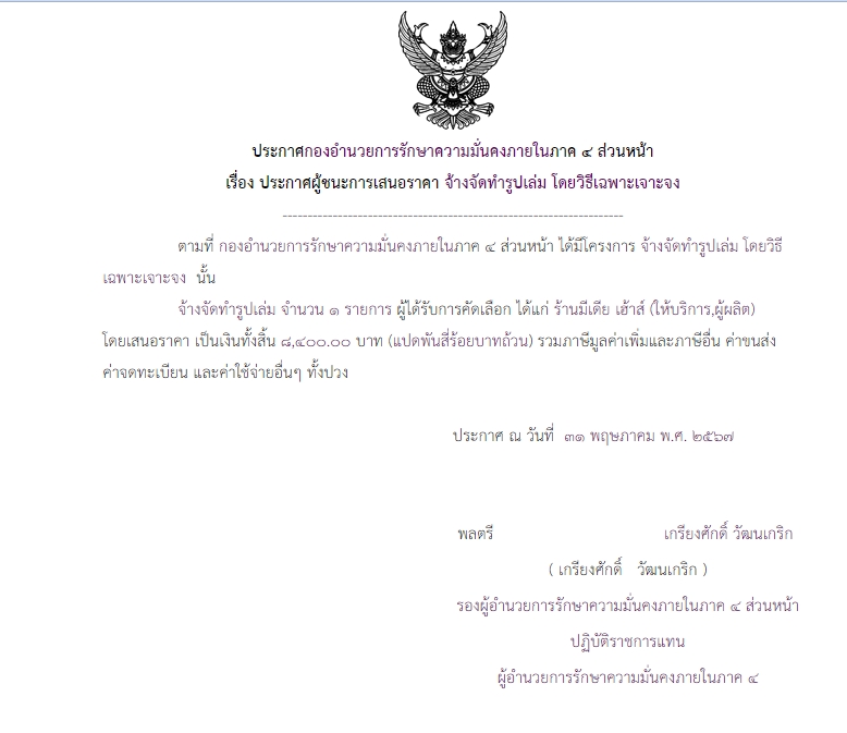 จัดซื้อ จัดจ้างประกาศผู้ชนะการเสนอราคา ประกาศผู้ชนะการเสนอราคา จ้างจัดทำรูปเล่ม โดยวิธีเฉพาะเจาะจง June 5, 2024 352 Share Facebook Twitter Google+ Telegram LINE