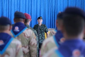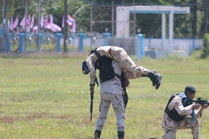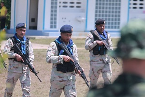 วันที่ 5 มิถุนายน 2567 เวลา 11.30 น. ณ ศูนย์ฝึกสมาชิกกองอาสารักษาดินแดนจังหวัดชายแดนภาคใต้ ตำบลตันหยงมัส อำเภอระแงะ จังหวัดนราธิวาส พลโท ศานติ ศกุนตนาค แม่ทัพภาคที่ 4/ ผู้อำนวยการรักษาความมั่นคงภายในภาค 4 เดินทางตรวจเยี่ยม และให้กำลังใจสมาชิกกองอาสารักษาดินแดนฯ ในการฝึก เสริมสร้างขีดความสามารถ สมาชิกกองอาสารักษาดินแดนจังหวัดชายแดนภาคใต้ (หลักสูตรผู้นำ อส.จชต.) รุ่นที่ 4 ซึ่งเป็นการฝึกเพื่อเพิ่มประสิทธิภาพ และขีดความสามารถให้แก่สมาชิกกองอาสารักษาดินแดน ให้มีความเข้าใจเกี่ยวกับการปฎิบัติภารกิจให้สอดคล้องกับนโยบายของผู้บังคับบัญชา ฝึกเพื่อเสริมสร้างทักษะและศักยภาพด้านภาวะผู้นำให้สามารถนำหน่วยในการดูแลพื้นที่ ซึ่งจะเป็นกำลังหลักในการดูแลพื้นที่ในอนาคต ตลอดจนสามารถต่อยอด และถ่ายทอดความรู้จากการฝึกให้กับสมาชิกนายอื่นๆได้อย่างครอบคลุม ทั้งนี้ แม่ทัพฯ ได้พบปะ พูดคุย และชมการฝึกภาคสนาม การฝึกทบทวนการยิงปืนการปฐมพยาบาลผู้บาดเจ็บทางยุทธวิธี และการดูแลตนเอง ของกองกำลังอาสารักษาดินแดนจังหวัดชายแดนภาคใต้ ก่อนมอบเครื่องอุปโภคบริโภค เพื่อเป็นขวัญกำลังใจให้กับกำลังพลผู้เข้ารับการฝึก
