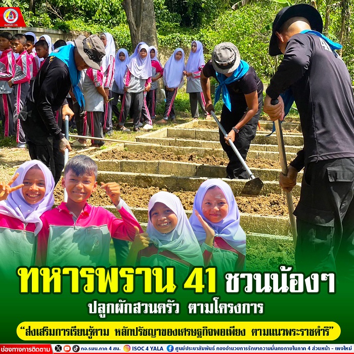 วันที่ 4 มิถุนายน 2567 เวลา 13.00 น. ณ โรงเรียนบ้านเกะรอ อำเภอรามัน จังหวัดยะลาหน่วยเฉพาะกิจกรมทหารพรานที่ 41 จัดกำลังพล ชุดปฏิบัติการกิจการพลเรือน กองร้อยทหารพรานที่ 4116 ร่วมกับ คณะครู และนักเรียน ดำเนินการขับเคลื่อน “โครงการส่งเสริมการเรียนรู้ตามหลักปรัชญาของเศรษฐกิจพอเพียง ตามแนวทางพระราชดำริ” ภายในโรงเรียน โดยการปลูกผักสวนครัว เพื่อเป็นอาหารกลางวันให้กับนักเรียน รวมถึงยังเป็นศูนย์กลางแหล่งเรียนรู้ของชุมชนให้กับประชาชนในพื้นที่ได้อีกด้วย