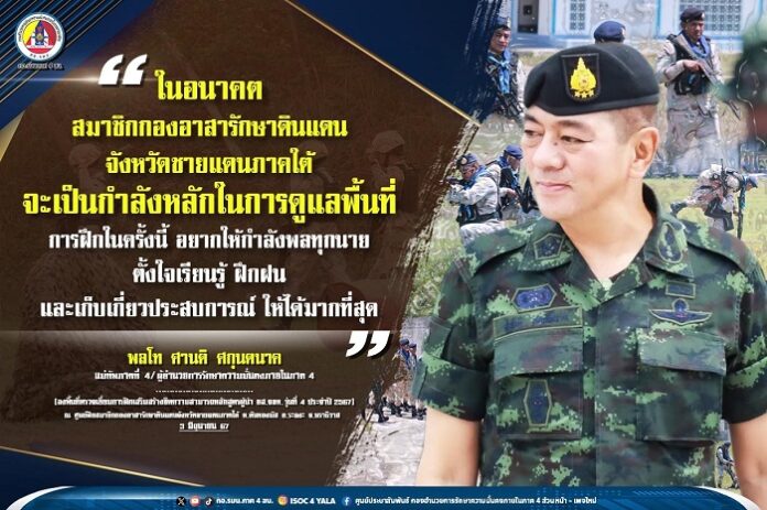 (ลงพื้นที่ตรวจเยี่ยมการฝึกเสริมสร้างขีดความสามารถหลักสูตรผู้นำ อส.จชต.รุ่นที่ 4 ประจำปี 2567 ณ ศูนย์ฝึกสมาชิกกองอาสารักษาดินแดนจังหวัดชายแดนใต้ ต.ตันหยงมัส อ.ระแงะ จ.นราธิวาส เมื่อ 5 มิ.ย.67)