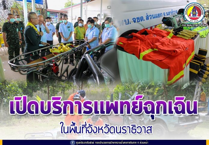 พระบาทสมเด็จพระเจ้าอยู่หัว ทรงพระกรุณาโปรดเกล้าฯ พระราชทานรถพยาบาลกู้ชีพฉุกเฉิน พร้อมอุปกรณ์ทางการแพทย์และอุปกรณ์สื่อสาร ให้กับศูนย์อำนวยการแพทย์ จังหวัดชายแดนภาคใต้ จำนวน 4 คัน ประจำในพื้นที่ 4 แห่ง ได้แก่ ศูนย์อำนวยการแพทย์จังหวัดชายแดนภาคใต้ ส่วนแยกค่ายสิรินธร สัมพันธ์ โรงพยาบาลยะลา จังหวัดยะลา, ส่วนแยกค่ายอิงคยุทธบริหาร สัมพันธ์ โรงพยาบาลปัตตานี จังหวัดปัตตานี, ส่วนแยกค่ายลพบุรีราเมศวร์ สัมพันธ์ โรงพยาบาลเทพา จังหวัดสงขลา และส่วนแยกจังหวัดนราธิวาส สัมพันธ์ โรงพยาบาลนราธิวาสราชนครินทร์ จังหวัดนราธิวาส ด้วยทรงห่วงใย และทรงคำนึงถึงความยากลำบากของราษฎรที่อาศัยอยู่ในพื้นที่ทุรกันดาร โดยเฉพาะเมื่อเจ็บป่วยและอยู่ในภาวะวิกฤต ซึ่งจะต้องรีบเคลื่อนย้ายนำส่งโรงพยาบาลในเวลาที่จำกัดเพื่อให้ได้รับการรักษาพยาบาลได้ทันเวลา อีกทั้งทรงมีพระราชประสงค์ที่จะพระราชทานความช่วยเหลือแก่ประชาชนในพื้นที่ทุรกันดารห่างไกล ให้ได้เข้าถึงการรักษาพยาบาลที่ดีมีคุณภาพ ดังพระราชปณิธานที่จะสืบสาน รักษา และต่อยอด พระราชกรณียกิจด้านสาธารณสุขของพระบาทสมเด็จพระบรมชนกาธิเบศร มหาภูมิพลอดุลยเดชมหาราช บรมนาถบพิตร และสมเด็จพระนางเจ้าสิริกิติ์ พระบรมราชินีนาถ พระบรมราชชนนีพันปีหลวง ซึ่งทางศูนย์อำนวยการแพทย์ จังหวัดชายแดนภาคใต้ ได้นำรถไปตรวจสภาพ และได้รับการรับรองมาตรฐานเป็นรถพยาบาลกู้ชีพขั้นสูงจากสถาบันการแพทย์ฉุกเฉินแห่งชาติ ตลอดจนได้รับอนุมัติการเป็นหน่วยแพทย์ฉุกเฉินประจำจังหวัดยะลา รหัสหน่วย ยล.011 จังหวัดปัตตานี รหัสหน่วย ปน.016 และ จังหวัดนราธิวาส รหัส 9692 ตามลำดับ