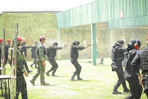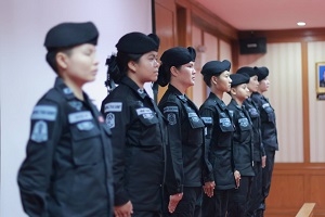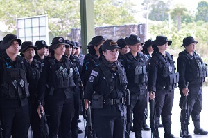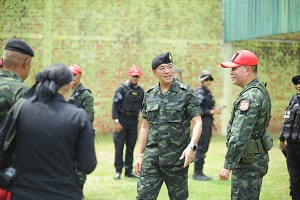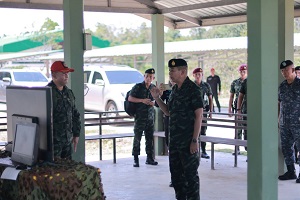 ต่อมา เวลา 13.00 น. แม่ทัพภาคที่ 4 ได้เดินทางต่อไปยัง ศูนย์ฝึกทางยุทธวิธี ค่ายมหาจักรีสิรินธร อำเภอนาทวี จังหวัดสงขลา เพื่อตรวจเยี่ยมและให้กำลังใจ หมวดทหารพรานหญิงในการฝึกทบทวน หลักสูตรหมู่ทหารพรานหญิงจังหวัดชายแดนภาคใต้ รุ่นที่ 1 ประจำปี 2567 ที่ได้จัดกำลังพลเข้ารับการฝึกจากหน่วยเฉพาะกิจกรมทหารพรานที่ 41 – 49 และหน่วยเฉพาะกิจกรมทหารพรานที่ 11, 22, และ 33 เข้ารับการฝึก รวมผู้เข้ารับการฝึกทั้งสิ้น จำนวน 72 นาย ดำเนินการฝึกตั้งแต่ วันที่ 25 พ.ค. – 8 มิ.ย.67 จำนวน 15 วัน ทั้งนี้เพื่อให้กำลังพลที่ผ่านการฝึก มีภาพลักษณ์ที่ดี สามารถนำความรู้ และประสบการณ์ที่ได้รับจากการฝึกไปประยุกต์ใช้ ในการปฏิบัติงานในพื้นที่ได้อย่างถูกต้อง เหมาะสม และมีประสิทธิภาพ ภายใต้หลักสูตรที่มีมาตรฐานเดียวกัน โดยแม่ทัพภาคที่ 4 กล่าวว่า “แม้เป็นสตรีก็ไม่ได้แตกต่างจากผู้ชาย เชื่อมั่นในดอกไม้เหล็กของจังหวัดชายแดนภาคใต้ สามารถปฏิบัติงานได้ประสบความสำเร็จ เช่นเดียวกัน”