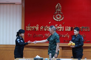 แม่ทัพภาคที่ 4 ได้ให้โอวาสแก่น้อง ๆ ที่เข้ารับรายงานตัวว่า”ยินดีต้อนรับน้องๆ อส.ทพ หญิงเข้าสู่กองทัพภาคที่ 4 และเข้าสู่จังหวัดชายแดนภาคใต้ หลังจากนี้น้องๆจะต้องปฏิบัติงานรับราชการ และชีวิตส่วนใหญ่อยู่ในจังหวัดชายแดนภาคใต้ กระจายไปยังกรมทหารพรานที่มีที่ตั้งของพื้นที่แตกต่างกันออกไป แน่นอนว่าการปฏิบัติงานในพื้นที่พิเศษแห่งนี้ย่อมมีความเสี่ยง เพราะฉะนั้นการปฏิบัติตนจะต้องอยู่ในความไม่ประมาท มีสติรู้ตนอยู่เสมอ บทบาทผู้นำต่อจากนี้จะต้องเข้าใจบริบทของงานของพื้นที่ให้ได้อย่างลึกซึ้ง สิ่งสำคัญต้องไม่สร้างเงื่อนไขให้เกิดขึ้นในพื้นที่อย่างเด็ดขาด ใช้โอกาสที่น้องๆ ได้มาจากความพยายามแสวงหาให้เกิดประโยชน์สูงสุด เพื่อชาติ บ้านเมือง เพื่อส่วนรวมและเพื่อตัวเองต่อไป หลังจากนี้เราคือครอบครัวเดียวกัน”