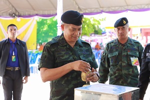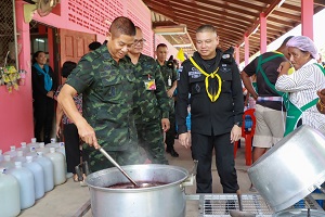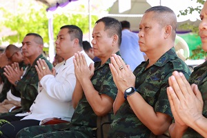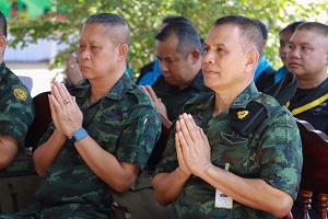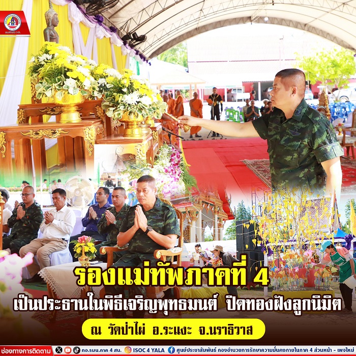 วันนี้ (7 มิถุนายน 2567) เวลา 09.30 น. พลตรี ไพศาล หนูสังข์ รองแม่ทัพภาคที่ 4 / รองผู้อำนวยการรักษาความมั่นคงภายในภาค 4 ส่วนหน้า เดินทางไปยัง วัดป่าไผ่ หมู่ที่ 5 ตำบลตันหยงลิมอ อำเภอระแงะ จังหวัดนราธิวาส เพื่อเป็นประธานฝ่ายฆราวาส ในพิธีเจริญพระพุทธมนต์ เปิดงานผูกพัทธสีมา ปิดทอง ฝังลูกนิมิต โดยมี พระธรรมวัชรจริยาจารย์ ที่ปรึกษาเจ้าคณะภาค 18 เป็นประธานฝ่ายสงฆ์ พร้อมด้วย พันเอก จักรกฤษณ์ รัตนะ รองผู้บังคับหน่วยเฉพาะกิจนราธิวาส, พันเอก สุรศักดิ์ พึ่งแย้ม ผู้บังคับหน่วยเฉพาะกิจทหารพรานที่ 45, นายอำเภอระแงะ พร้อมเจ้าหน้าที่ส่วนราชการ, พุทธศาสนิกชนในพื้นที่ให้การต้อนรับ