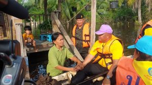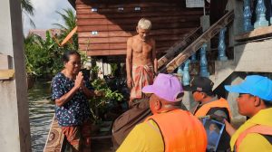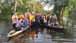 จากนั้นแม่ทัพภาคที่ 4 พร้อมด้วย นายสมศักดิ์ บุญสูง ผู้ชำนาญการสงเคราะห์ผู้ประสบภัย ผู้แทนจากมูลนิธิราชประชานุเคราะห์ในพระบรมราชูปถัมภ์ เดินทางมายังพื้นที่ หมู่ที่ 3 ตำบลเกาะทวด อำเภอปากพนัง จังหวัดนครศรีธรรมราช เพื่อมอบถุงยังชีพพระราชทาน บรรเทาความเดือดร้อนให้กับพี่น้องประชาชน ซึ่งการเดินทางต้องใช้รถขนาดใหญ่และเรือสัญจร เนื่องจากถนนเข้า-ออกหมู่บ้าน น้ำสูงกว่า 1.50 เมตร เนื่องจากพื้นที่ตำบลเกาะทวด เป็นแอ่งกระทะ เกิดน้ำท่วมขังเป็นประจำทุกปี มีพี่น้องประชาชนได้รับความเดือดร้อน กว่า….ครัวเรือน ถือเป็นการสร้างขวัญ กำลังใจให้กับผู้ประสบภัย ในการต่อสู้ฝ่าฟันปัญหาความเดือดร้อนในครั้งนี้ไปให้ได้