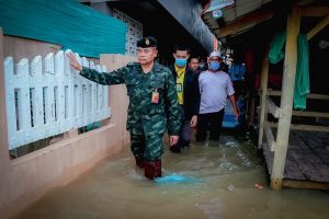 เมื่อวันที่ 5 ธันวาคม 2563 เวลา 10.30 ณ ชุมชนท่าเจ๊ะกาเซ็ง,ท่าชมพู่ อำเภอสุไหงโก-ลก จังหวัดนราธิวาส พลตรีไพศาล หนูสังข์ ผู้บัญชาการกองพลทหารราบที่15 / ผู้บังคับหน่วยเฉพาะกิจนราธิวาส พร้อมด้วย เจ้าหน้าที่ทหาร ตำรวจ ชุดแพทย์ ป้องกันและบรรเทาสาธารณะภัยเทศบาล และผู้นำท้องถิ่น เดินทางลงพื้นที่ช่วยเหลือ และมอบถุงยังชีพ น้ำดื่ม พร้อมมอบเวชภัณฑ์ยารักษาโรค เพื่อบรรเทาความเดือดร้อนเบื้องต้นให้แก่ผู้ป่วยติดเตียง พี่น้องประชาชนที่ได้รับความเดือดร้อนจากอุทกภัยในพื้นที่ จำนวน 50 ชุด พร้อมให้กำลังพลเข้าช่วยชาวบ้านเต็มที่ตลอด 24 ชั่วโมง ขณะที่น้ำเริ่มลด แต่ยังมีฝนตกลงอย่างต่อเนื่อง ให้พี่น้องประชาชนใช้ความระมัดระวังในการใช้ชีวิตด้วย รวมไปถึงสัตว์มีพิษต่าง ๆ และสิ่งของเครื่องใช้จำเป็นให้ช่วยดูแลตนเอง และหากได้รับความเดือดร้อนให้แจ้งเจ้าหน้าที่ในส่วนที่เกี่ยวข้องโดยด่วน