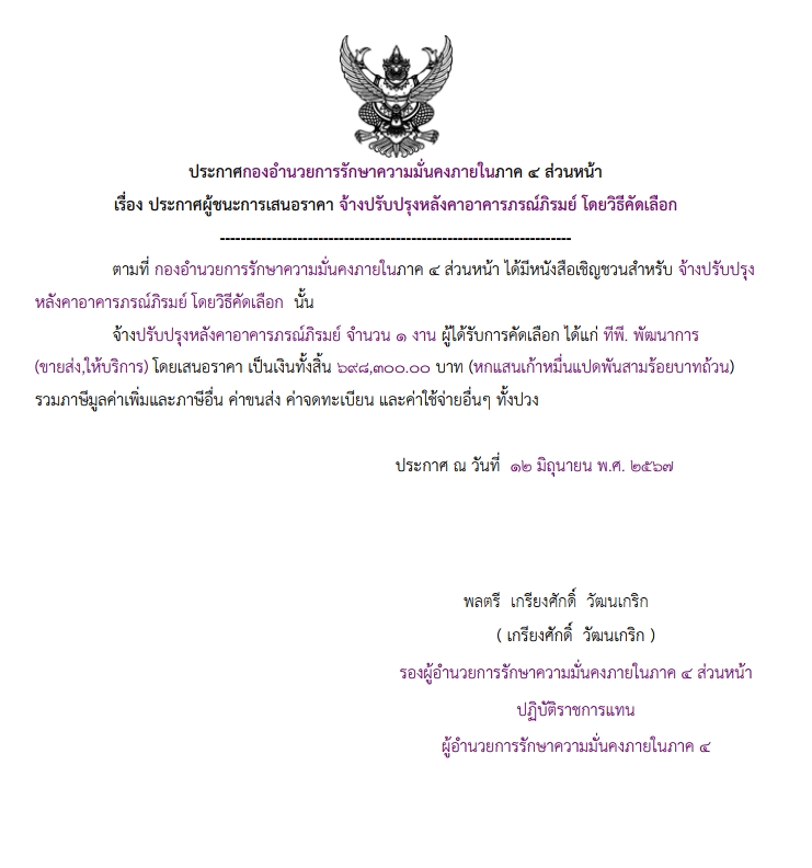 จัดซื้อ จัดจ้างประกาศผู้ชนะการเสนอราคา ประกาศผู้ชนะการเสนอราคา จ้างปรับปรุงหลังคาอาคารภรณ์ภิมย์ โดยวิธีคัดเลือก June 12, 2024 439 Share Facebook Twitter Google+ Telegram LINE