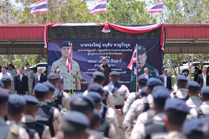 จากนั้น นายกองใหญ่ อนุทิน ชาญวีรกูล รองนายกรัฐมนตรีและรัฐมนตรีว่าการกระทรวงมหาดไทยในฐานะผู้บัญชาการกองอาสารักษาดินแดนได้มอบสิ่งของบำรุงขวัญให้กับผู้เข้ารับการฝึก พร้อมกล่าวให้โอวาทและนำความห่วงใยจากนายกรัฐมนตรี และผู้บังคับบัญชามายังผู้เข้ารับการฝึกทุกนาย ขอให้ทุกคนตั้งใจ อดทน เก็บเกี่ยวความรู้จากการฝึกให้ได้มากที่สุด และหมั่นพัฒนาความสามารถอยู่เสมอ ห้ามประมาท และมีสติตลอดเวลา เพื่อนำความรู้กลับไปพัฒนาการปฏิบัติภารกิจในพื้นที่ของตนเองได้อย่างรัดกุม เพื่อดูแลพี่น้องประชาชนคนในพื้นที่ได้อย่างมีประสิทธิภาพ และร่วมสร้างพื้นที่ปลอดเหตุ ปลอดภัย นำความผาสุขสู่พี่น้องในชุมชยบ้านเกิดต่อไป