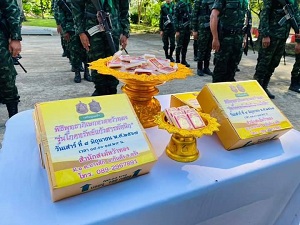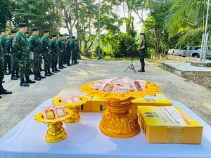 พันโท ภูมิศักดิ์ ศักดิ์เพชร ผู้บังคับหน่วยเฉพาะกิจสงขลา 40 พบปะเยี่ยมเยียนเป็นกำลังใจ และนำวัตถุมงคล (พระเครื่อง ทวดหว้าทอง “รุ่นโภคทรัพย์แก้วสารพัดนึก” สำนักสงฆ์หว้าทอง) มามอบให้กับกำลังพลที่ปฏิบัติงานในพื้นที่จังหวัดสงขลา เพื่อความเป็นสิริมงคล เป็นเครื่องยึดเหนี่ยวจิตใจ และเป็นขวัญกำลังใจให้กับกำลังพล ปฏิบัติงาน สำเร็จลุล่วงและปลอดภัย
