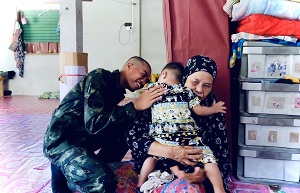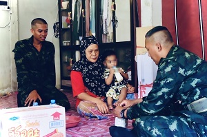 เมื่อวันที่ 13 มิถุนายน 2567 เวลา 09.00 น. พันโท พันทวี สุวอ ผู้บังคับกองพันทหารราบที่ 1 กรมทหารราบที่ 153 มอบหมายให้หน่วยฝึกทหารใหม่ กองพันทหารราบที่ 1 กรมทหารราบที่ 153 จัดกำลังพลลงพื้นที่ไปยังหมู่ที่ 4 บ้านเบญญา ตำบลตาเซะ อำเภอเมือง จังหวัดยะลา เพื่อเยี่ยมเยียนครอบครัวของ พลทหาร มูฮัมหมัด กาเดาะ ซึ่งเป็นน้องทหารใหม่ของหน่วย ซึ่งมีบิดาเป็นผู้ป่วยติดเตียงด้วยโรคเส้นเลือดในสมองตีบ และอัมพาตครึ่งซีกช่วยเหลือตัวเองไม่ได้ และหน่วยทราบว่าในห้วงที่ผ่านมาบิดาของน้องพลทหาร มูฮัมหมัดฯ ได้เข้ารับการรักษาและกายภาพบำบัดอย่างต่อเนื่องจนอาการดีขึ้น