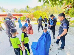 เมื่อวันที่ 14 มิถุนายน 2567 เวลา 09.00 น. หน่วยเฉพาะกิจกรมทหารพรานที่ 33 โดย กองร้อยทหารพานที่ 3302 ร้อย.ทพ.3302 จัดกำลังพลชุดปฏิบัติการกิจการพลเรือนเข้าพบปะ/พัฒนาสัมพันธ์กับคณะครูและนักเรียน เพื่อเสริมสร้างความสัมพันธ์อันดีระหว่างเจ้าหน้าที่รัฐกับคณะครูและนักเรียน พร้อมกับให้ความรู้เกี่ยวกับ ให้ความรู้เกี่ยวกับโทษ และภัยของยาเสพติด ส่งผลกระทบต่อปัญหาของสังคมอย่างไร และบริการตัดผมฟรีให้กับนักเรียนชาย ตามโครงการ “เกศาสานใจ” เพื่อให้นักเรียนมีทรงผมที่ถูกต้องตามกฎระเบียบของโรงเรียน อีกทั้งยังเป็นการลดภาระค่าใช้จ่ายของผู้ปกครองนักเรียน ณ โรงเรียนบ้านตะบิงติงงีสามัคคี หมู่ที่ 13 บ้านปาลอบาตะ ตำบลตลิ่งชัน อำเภอบันนังสตา จังหวัดยะลา