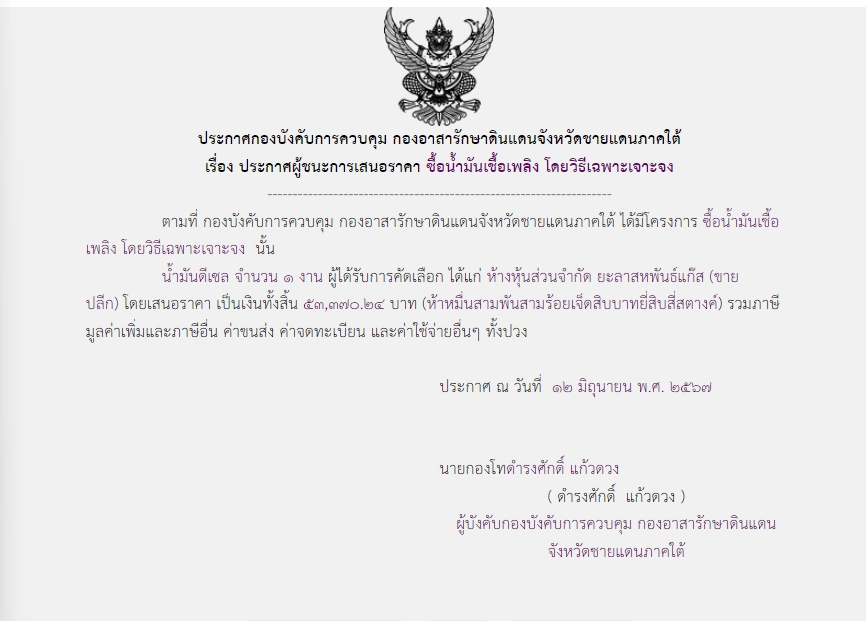 จัดซื้อ จัดจ้างประกาศผู้ชนะการเสนอราคา ประกาศผู้ชนะการเสนอราคา ซื้น้ำมันเชื้อเพลิง โดยวิธีเฉพาะเจาะจง June 17, 2024 413 Share Facebook Twitter Google+ Telegram LINE