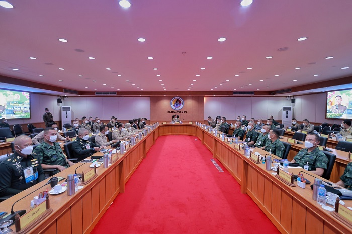 จากนั้น องคมนตรีและคณะฯ เดินทางไปยังกองอำนวยการรักษาความมั่นคงภายในภาค 4 ส่วนหน้า เพื่อติดตามสถานการณ์และรับฟังสรุปความคืบหน้าคดีสำคัญ จากกองกำลังตำรวจจังหวัดชายแดนภาคใต้ พร้อมหารือและสรุปแนวทางการดำเนินงานการแก้ไขปัญหาจังหวัดชายแดนภาคใต้ให้มีประสิทธิภาพยิ่งขึ้น ตลอดจนมอบนโยบายและแนวทางการปฏิบัติภารกิจในพื้นที่ให้เกิดความปลอดภัยแก่เจ้าหน้าที่และประชาชนให้มากที่สุด พร้อมกำชับให้ดูแลส่งเสริมด้านการศึกษาแก่เด็กเยาวชนจากครอบครัวผู้ได้รับผลกระทบ ให้ต่อยอดไปสู่การมีงานทำในอนาคต พร้อมให้กำลังใจทุกหน่วยงานที่ปฏิบัติภารกิจเพื่อพี่น้องประชาชนในพื้นที่จังหวัดชายแดนภาคใต้ โดยมี พลโท ปราโมทย์ พรหมอินทร์ แม่ทัพน้อยที่ 4 / รองผู้อำนวยรักษาความมั่นคงภายในภาค 4 ส่วนหน้า, พลตำรวจโท ปิยะวัฒน์ เฉลิมศรี ผู้บัญชาการกองกำลังตำรวจ จังหวัดชายแดนภาคใต้, พันตำรวจโท วรรณพงษ์ คชรักษ์ เลขาธิการศูนย์อำนวยการบริหารจังหวัดชายแดนภาคใต้ พร้อมด้วยคณะผู้บังคับบัญชาหน่วยขึ้นตรงกองอำนวยการรักษาความมั่นคงภายในภาค 4 ส่วนหน้า ตลอดจนส่วนราชการที่เกี่ยวข้อง ร่วมประชุมฯ