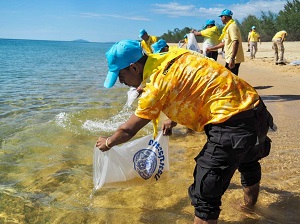 ในวันที่ 19 มิ.ย.67 เวลา 09.00 : กรมทหารพรานที่44/หน่วยเฉพาะกิจกรมทหารพรานที่ 44 จัดกำลังพลของหน่วยในส่วนของ กองร้อยหน่วยขึ้นตรง ร่วมกับ ส่วนราชการฯ และพี่น้องประชาชนจิตอาสาในพื้นที่ ต.ดอนทราย อ.ไม้แก่น จ.ปัตตานี ร่วมกิจกรรม “ปล่อยพันธุ์สัตว์น้ำ (เค็ม)” ลงสู่แหล่งน้ำธรรมชาติ (ทะเล) เพื่อเป็นการอนุรักษ์ และขยายพันธุ์สัตว์น้ำกลับคืนสู่ธรรมชาติ รวมทั้ง เพื่อสร้างความสมดุลในระบบนิเวศน์ ตามโครงการพัฒนาศักยภาพพื้นที่ชุมชน เพื่อถวายเป็นพระราชกุศล เนื่องในโอกาส “วันเฉลิมพระชนมพรรษา สมเด็จพระนางเจ้าสุทิดา พัชรสุธาพิมลลักษณ พระบรมราชินี 3 มิถุนายน” และ เพื่อถวายเป็นพระราชกุศล เเด่พระบาทสมเด็จพระเจ้าอยู่หัวฯ เนื่องในโอกาสมหามงคล เฉลิมพระชนมพรรษา 72 พรรษา ใน 28 กรกฎาคม 2567 โดยมี นาย ซุลกิฟลี สัญญากุล นายอำเภอไม้แก่น เป็นประธานฯ ณ บริเวณแหล่งน้ำริมชายหาด ภายในชุมชน หมู่ที่ 3 บ้านละเวง ตำบลดอนทราย อำเภอไม้แก่น จังหวัดปัตตานี