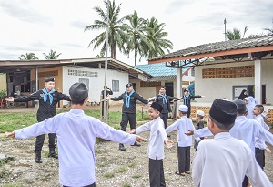 นอกจากนี้ เจ้าหน้าที่ทหารพรานยังนำนักเรียนร่วมทำกายบริหาร เพื่อส่งเสริมการออกกำลังกาย รวมถึงให้ความรู้เกี่ยวกับประวัติศาสตร์ความเป็นมาของ “ธงไตรรงค์ ธงชาติไทย” เพื่อให้นักเรียนได้รู้ถึงความหมายและความสำคัญของธงชาติไทย โดยใช้ธงชาติเป็นสื่อกลางในการสอน สำหรับการดำเนินการดังกล่าว เพื่อเป็นการสร้างความมั่นใจให้กับบุคลากรทางการศึกษา ในการกำกับดูแลเกี่ยวกับความปลอดภัยในการดำเนินชีวิต รวมทั้งเป็นการสร้างสัมพันธ์อันดีระหว่างพี่น้องประชาชน และเยาวชนในพื้นที่ กับเจ้าหน้าที่ทางภาครัฐฯ