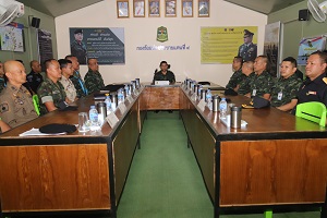 โอกาสนี้ พลตรี ไพศาล หนูสังข์ รองผู้อำนวยการรักษาความมั่นคงภายในภาค 4 ส่วนหน้า และคณะ ได้ตรวจเยี่ยมและร่วมรับฟังผลการปฏิบัติงานที่ผ่านมาของหน่วย รวมถึงรับทราบปัญหาข้อขัดข้องในการปฏิบัติงาน พร้อมได้มอบแนวทางข้อแนะนำต่าง ๆ ในการปฏิบัติงาน อีกทั้งได้นำนโยบายข้อสั่งการของ ผู้อำนวยการรักษาความมั่นคงภายในภาค 4 มาเน้นย้ำแก่เจ้าหน้าที่ให้นำไปปฏิบัติอย่างเคร่งครัด และทุกภารกิจที่ได้รับมอบหมายต้องมีการวางแผนการปฏิบัติงานอย่างรัดกุม ปฏิบัติงานด้วยความระมัดระวังไม่ประมาท และให้มีการประสานการทำงานร่วมกันระหว่าง ผู้นำท้องที่ ผู้นำท้องถิ่น เครือข่ายภาคประชาชนได้เข้ามามีส่วนร่วมในการผนึกกำลังยับยั้งการกระทำผิดกฎหมาย โดยเจ้าหน้าที่จะต้องปรับเปลี่ยนยุทธวิธีไป ตามสถานการณ์ต่าง ๆ เพื่อควบคุมบุคคลหรือสิ่งผิดกฎหมายทุกชนิด ผ่านเข้า-ออก และป้องกันการก่อเหตุในทุกรูปแบบ ตามแนวชายแดนไทย-มาเลเซีย