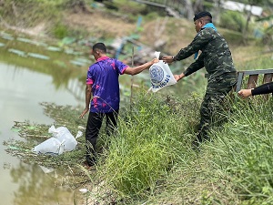 วันที่ 25 มิถุนายน 2567 เวลา 11.00 น. หน่วยเฉพาะกิจสงขลา 40 นำโดย ร้อยโท อัษฎาวุธ พวงดอกไม้ ผู้บังคับหมวดปืนเล็กที่ 3 กองร้อยทหารราบที่ 2532 พร้อมด้วยชุดปฏิบัติการกิจการพลเรือน ร่วมกับ กองสานใจสู่สันติ กองอำนวยความการรักษาความมั่นคงภายในภาค 4 ส่วนหน้า, กรมประมง, ผู้นำชุมชน และ บุคลากรทางการศึกษา ร่วมส่งมอบพันธุ์ปลาน้ำจืด ประเภทกินพืช ประกอบด้วย ปลานิล, ปลายี่สก และปลานวลจันทร์ นำมามอบให้กับประชาชนในพื้นที่ บ้านพรุชิง, บ้านกระอาน และโรงเรียนบ้านกระอาน ตำบลท่าม่วง อำเภอเทพา จังหวัดสงขลา สำหรับนำไปเลี้ยงไว้เป็นอาหาร และจำหน่ายเป็นอาชีพเสริม เพื่อเป็นการลดภาระค่าใช้จ่ายภายในครัวเรือน พร้อมทั้งสร้างความมั่นคงทางด้านอาหาร รวมถึงการพัฒนาองค์ความรู้ ให้ประชาชนสามารถพึ่งพาตนเองได้ ตามหลักปรัชญาของเศรษฐกิจพอเพียง เพื่อให้ประชาชน มีความมั่นคงทางอาหาร ส่งเสริมเศรษฐกิจฐานราก สร้างความมั่นคงให้เกษตรกร พัฒนาคุณภาพชีวิต และต่อยอดเลี้ยงเป็นอาชีพเสริม สร้างงาน สร้างรายได้ ให้กับประชาชนในพื้นที่ต่อไป