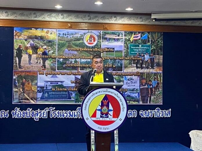 วันนี้ (25 มิถุนายน 2567) ที่โรงแรม เก็นติ้ง อำเภอสุไหงโก-ลก จังหวัดนราธิวาส พลโท ธัชพล เปี่ยมวุฒิ ผู้อำนวยการ ศูนย์ประสานการปฏิบัติที่ 5 กองอำนวยการรักษาความมั่นคงภายในราชอาณาจักร เป็นประธารเปิดการประชุมสัมมนาเชิงปฏิบัติการ กิจกรรมรายการพัฒนากลไกการขับเคลื่อนและการบูรณาการงานด้านความมั่นคง ประจำปีงบประมาณ 2567 ครั้งที่ 2 ระหว่างวันที่ 25 – 27 มิถุนายน 2567 เพื่อให้กำลังพลมีความรู้ ความเข้าใจงานด้านนโยบายและยุทธศาสตร์ การแก้ไขปัญหาจังหวัดชายแดนภาคใต้ รวมทั้งเพิ่มประสิทธิภาพการทำงาน และบูรณาการในการปฏิบัติงานของหน่วย อีกทั้งสร้างความเข้าใจในภารกิจของหน่วยงาน และกระบวนการ สามารถวางแผน วิเคราะห์การดำเนินงานได้อย่างถูกต้องรวดเร็ว ตลอดจนพัฒนาปรับปรุงแนวทางการปฏิบัติงานของหน่วยให้มีประสิทธิภาพมากยิ่งขึ้น ทั่งการรับทราบ ปัญหาข้อขัดข้อง และร่วมหาแนวทางการแก้ไขร่วมกัน เพื่อสร้างบรรยากาศการแลกเปลี่ยนองค์ความรู้ระหว่างหน่วย มุ่งเสริมสร้างความสามัคคี มีสัมพันธภาพที่ดีระหว่างเพื่อนร่วมงานและหน่วยงานข้างเคียง โดยมีกำลังพลศูนย์ประสานงานด้านนโยบายและยุทธศาสตร์ จังหวัดชายแดนภาคใต้, หน่วยงานภายใน กองอำนวยการรักษาความมั่นคงภาคในภาค 4 ส่วนหน้า, กองอำนวยการรักษาความมั่นคงจังหวัดนราธิวาส ประกอบด้วย 12 หน่วยงาน รวมทั้งสิ้น 60 คน