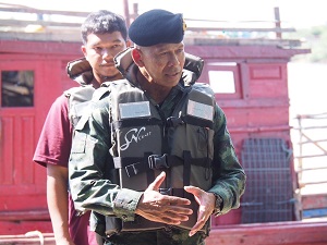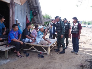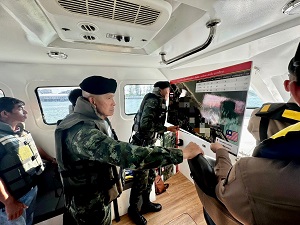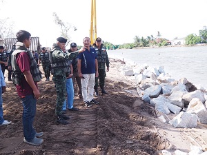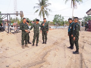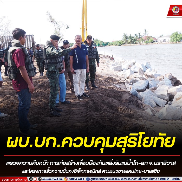เมื่อวันที่ 27 มิถุนายน 2567 ที่จุดก่อสร้างเขื่อนป้องกันตลิ่ง อำเภอตากใบ จังหวัดนราธิวาส พลตรี เฉลิมพร ขำเขียว ผู้บัญชาการกองพลทหารราบที่ 15 / ผู้บังคับกองบังคับการควบคุมสุริโยทัย เดินทางลงพื้นที่ ตรวจความคืบหน้า การก่อสร้างเขื่อนป้องกันตลิ่งริมแม่น้ำโก-ลก จังหวัดนราธิวาส และโครงการรั้วมั่นคงอิเล็กทรอนิกส์ (เสนอโครงการที่ 2) โดยได้รับฟังบรรยายสรุปโครงการติดตั้งระบบกล้องโทรทัศน์วงจรปิดพร้อมอุปกรณ์ สำหรับก่อสร้างรั้วความมั่นคงอิเล็กทรอนิกส์ ตามแนวชายแดนไทย – มาเลเซีย ด้านอำเภอตากใบ ,อำเภอสุไหงโก-ลก และ อำเภอแว้ง จังหวัดนราธิวาส พร้อมทั้ง ลงพื้นที่ประชาสัมพันธ์ สร้างความเข้าใจ ให้แก่พี่น้องประชาชนในชุมชน ซึ่งอาศัยอยู่ริมแม่น้ำสุไหงโก-ลก เพื่อให้ทราบถึงเหตุผลความจำเป็น ในการสร้างการก่อสร้างเขื่อนป้องกันตลิ่งริมแม่น้ำโก-ลก จังหวัดนราธิวาส