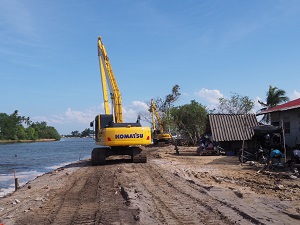 ซึ่งการก่อสร้างเขื่อนป้องกันตลิ่งริมแม่น้ำสุไหงโก-ลก มีระยะทาง 7.528 กิโลเมตร บริเวณแนวชายแดนด้านมาเลเซีย ในพื้นที่ ตำบลเกาะสะท้อน, ตำบลโฆษิต และตำบลนานาค อำเภอตากใบ จังหวัดนราธิวาส โดยในระยะแรกดำเนินการในพื้นที่ตำบลเกาะสะท้อน เป็นระยะทาง 830 เมตร และการก่อสร้างรั้วความมั่นคงอิเล็กทรอนิกส์ ระยะทางยาว 6 กิโลเมตร จะมีการติดตั้งระบบ CCTV ในพื้นที่ 4 ชุมชนริมตลิ่งแม่น้ำสุไหง โก-ลก ในพื้นที่อำเภอตากใบ คือ ชุม ชนตาบา ตำบลเจ๊ะเห ชุมชนตำบลเกาะสะท้อน ชุมชนตำบลโฆษิต และชุมชนตำบลนานาค ซึ่งกล้อง CCTV ทั้ง 357 ตัว มีประสิทธิภาพในการจับใบหน้า การซูม จับภาพมองคงที่และการหมุนไปมา ที่ไม่ได้สร้างผลกระทบต่อวิถีชีวิตของประชาชนทั้ง 2 ฟากฝั่ง