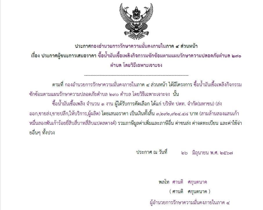จัดซื้อ จัดจ้างประกาศผู้ชนะการเสนอราคา ประกาศผู้ชนะการเสนอราคา ซื้อน้ำมันเชื้อเพลิงกิจกรรมซักซ้อมตามแผนรักษาความปลอดภัยตำบล ๒๙๐ ตำบล โดยวิธีเฉพาะเจาะจง June 28, 2024 330 Share Facebook Twitter Google+ Telegram LINE
