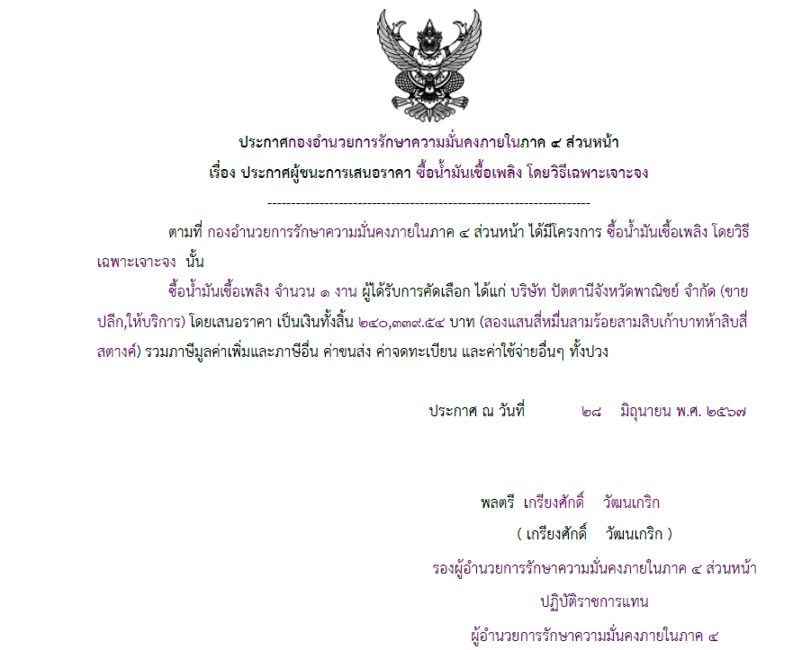 จัดซื้อ จัดจ้างประกาศผู้ชนะการเสนอราคา ประกาศผู้ชนะการเสนอราคา ซื้อน้ำมันเชื้อเพลิง โดยวิธีเฉพาะเจาะจง June 28, 2024 437 Share Facebook Twitter Google+ Telegram LINE