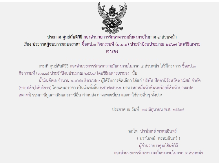 ประกาศผู้ชนะการเสนอราคา ซื้อสป.๓ กิจกรรมที่ (๑.๑.๑)ประจำปีงบประมาณ ๒๕๖๗ โดยวิธีเฉพาะเจาะจง