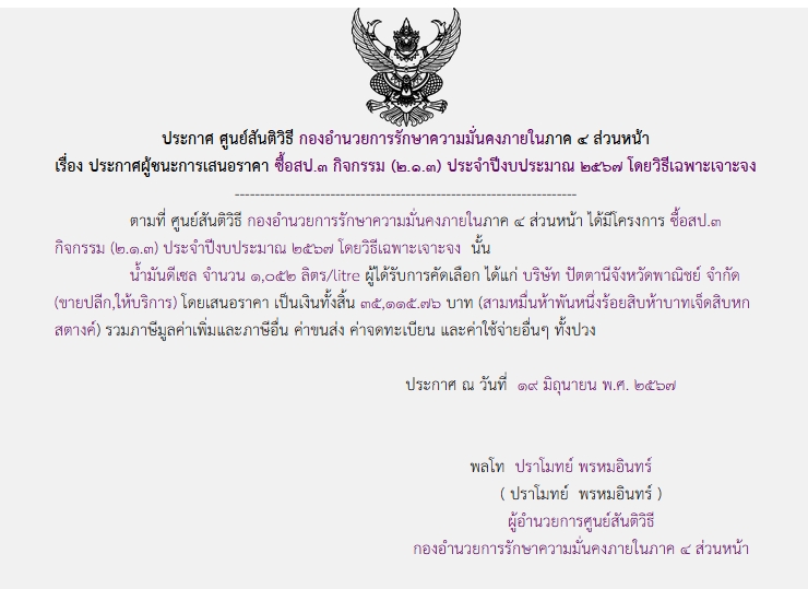 จัดซื้อ จัดจ้างประกาศผู้ชนะการเสนอราคา ประกาศผู้ชนะการเสนอราคา ซื้อสป.๓ กิจกรรมที่ (๒.๑.๓)ประจำปีงบประมาณ ๒๕๖๗ โดยวิธีเฉพาะเจาะจง June 29, 2024 396 Share Facebook Twitter Google+ Telegram LINE
