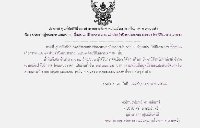ประกาศผู้ชนะการเสนอราคา ซื้อสป.๓ กิจกรรมที่ (๓.๒.๑)ประจำปีงบประมาณ ๒๕๖๗ โดยวิธีเฉพาะเจาะจง