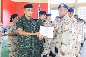พลตรี เฉลิมพงค์ คงบัว เลขาธิการ กองอำนวยการรักษาความมั่นคงภายในภาค 4 ส่วนหน้า กล่าวว่า “โอกาสนี้ขอแสดงความยินดีและชื่นชมผู้ที่มีผลการฝึกดีเด่นในแต่ละตำแหน่งหน้าที่ ซึ่งจะเป็นกำลังหลักที่จะนำความรู้ กลับไปขยายผลการฝึกในครั้งนี้ / ให้กับหน่วยตนเอง ตลอดระยะเวลา 1 สัปดาห์ที่ผ่านมาจะเห็นได้ว่า การวางแผนจัดการฝึกและการดำเนินการฝึก โดยกองอำนวยการ รักษาความมั่นคงภายในภาค 4 ส่วนหน้า , หน่วยเฉพาะกิจสันติสุข และกองบังคับการควบคุมกองอาสารักษาดินแดนจังหวัดชายแดนภาคใต้ ร่วมกันวางแผนการฝึก โดยกำหนดเป็นกิจเฉพาะ คือ กิจเฉพาะด้านการข่าว กิจเฉพาะด้านกิจการพลเรือน กิจเฉพาะด้านปฏิบัติการจิตวิทยา และประชาสัมพันธ์ และกิจเฉพาะด้านยุทธวิธี ซึ่งได้กำหนดรูปแบบการดำเนินการฝึกและจัดทำแผนบทเรียน ในการประเมินผลผู้เข้ารับการฝึก ซึ่งผู้เข้ารับการฝึกในครั้งนี้ จะได้นำความรู้และประสบการณ์ ที่ได้จากการฝึกนำไปขยายผล ในการเสริมสร้างขีดความสามารถในการป้องกันและปราบปรามการก่อความไม่สงบในทุกมิติ ได้แก่การปรับปรุงสภาพแวดล้อมและการช่วยเหลือประชาชน พิทักษ์ประชาชนและทรัพยากร ปราบปรามกองกำลังติดอาวุธ งานด้านการข่าว และงานปฏิบัติการจิตวิทยา เพื่อให้กำลังกองอาสารักษาดินแดนจังหวัดชายแดนภาคใต้มีขีดความสามารถและศักยภาพในการปฏิบัติงานแก้ไขปัญหาจังหวัดชายแดนภาคใต้ และมีความพร้อม สามารถปฏิบัติงานทดแทนกำลังทหารหลักตามแนวทาง และหลักการป้องกันและปราบปรามการก่อความไม่สงบ ในการใช้กำลังทหารให้น้อยใช้กำลังพลเรือนให้มากที่สุด ขอบคุณทุกฝ่ายที่ร่วมกันคิด และร่วมกันสนับสนุนให้โครงการนี้เกิดขึ้นและสำเร็จลุล่วงมาด้วยดี