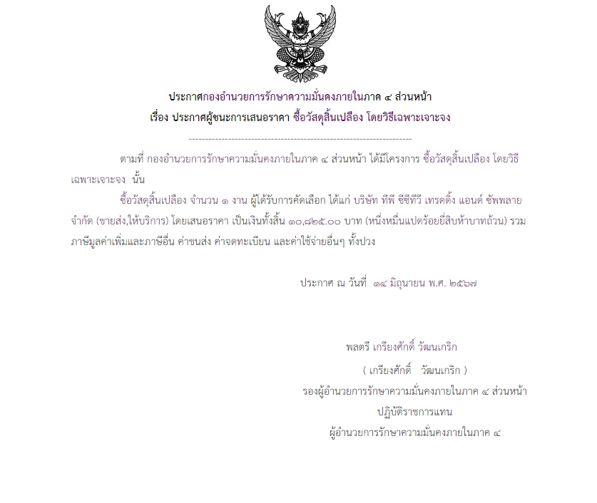จัดซื้อ จัดจ้างประกาศผู้ชนะการเสนอราคา ประกาศผู้ชนะการเสนอราคา ซื้อวัสดุสิ้นเปลือง โดยวิธีเฉพาะเจาะจง July 5, 2024 296 Share Facebook Twitter Google+ Telegram LINE