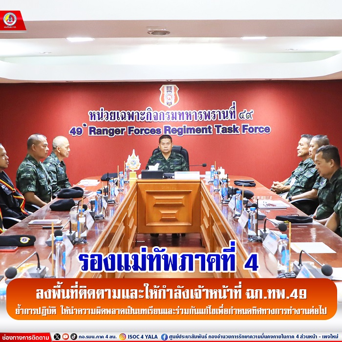 โดย รองแม่ทัพภาคที่ 4 ระบุว่า เหตุการณ์ที่เกิดขึ้นเป็นความผิดพลาดที่ต้องมาร่วมกันแก้ไข นำไปเป็นบทเรียน และจะถอดบทเรียนเพื่อนำไปสู่การปฏิบัติและกำหนดทิศทางต่อไป จากการติดตามสถานการณ์ ยังมีบางจุดที่เป็นจุดล่อแหลม ให้เจ้าหน้าที่มีความรัดกุม และมีความระมัดระวังมากยิ่งขึ้น หมั่นสังเกต วิเคราะห์ วางแผน กำหนดเส้นทางจรยุทธ์ สำหรับพื้นที่สิ่งที่เฝ้าระวังตาม ป่า ภูเขา ทั้งเดินเท้าและยานพาหนะให้ศึกษาเส้นทางอย่างละเอียดถี่ถ้วน โดยเฉพาะเรื่องการติดต่อสื่อสาร ให้มีการประสานกันอย่างต่อเนื่อง และโอกาสนี้ได้นำความห่วงใยและข้อเน้นย้ำ ของ พลโท ศานติ ศกุนตนาค แม่ทัพภาคที่ 4 / ผู้อำนวยการรักษาความมั่นคงภายในภาค 4 ถึงแนวทางการปฏิบัติ โดยเฉพาะในเรื่องของการติดตามสถานการณ์ด้านการข่าว,ให้เจ้าหน้าที่ทุกนายมีความตื่นตัวอยู่ตลอดเวลา ไม่ประมาท มีสติ เรียนรู้จากเหตุการณ์ที่เกิดขึ้นเป็นบทเรียน และนำมาปรับปรุงแก้ไข เพื่อไม่ให้เกิดเหตุการณ์ที่ไม่คาดคิดต่อไป