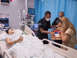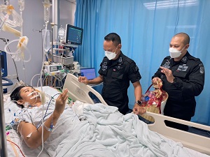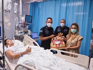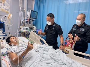 โดย ผู้บังคับกองกำลังทหารพรานจังหวัดชายแดนภาคใต้ ได้พูดคุย สอบถามอาการแสดงความห่วงใย และชื่นชมที่เสียสละ ทุ่มเทการปฏิบัติหน้าที่เพื่อส่วนรวมอย่างสุดกำลังความสามารถ ขอให้สุขภาพร่างกายแข็งแรงในเร็ววัน พร้อมกันนี้ได้มอบกระเช้าเยี่ยม และเงินช่วยเหลือส่วนหนึ่งเพื่อเป็นขวัญกำลังใจให้กับครอบครัวในการพักรักษาตัวต่อไป