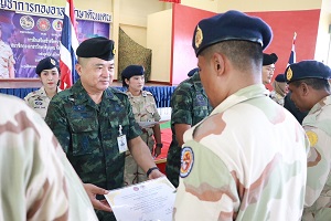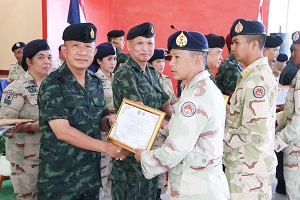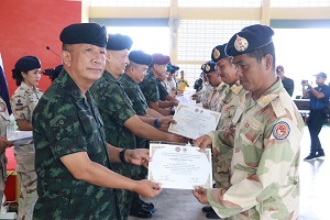 ในโอกาสนี้ พลโทปราโมทย์ พรหมอินทร์ แม่ทัพน้อยที่ 4/ รองผู้อำนวยการรักษาความมั่นคงภายในภาค 4 ส่วนหน้า กล่าวแสดงความยินดี และชื่นชมผู้ที่มีผลการฝึกดีเด่นในแต่ละตำแหน่งหน้าที่ โดยผลการดำเนินการฝึกตลอดระยะเวลา 1 สัปดาห์ ที่ผ่านมา จะเห็นได้ว่า กองอำนวยการรักษาความมั่นคงภายในภาค 4 ส่วนหน้า, หน่วยเฉพาะกิจสันติสุข และกองบังคับการควบคุมกองอาสารักษาดินแดนจังหวัดชายแดนภาคใต้ ร่วมกันวางแผนให้ผู้ผ่านการฝึก ซึ่งเป็นกำลังหลักที่จะนำความรู้กลับไปขยายผลการฝึกให้กับหน่วยตนเอง เพื่อเสริมสร้างขีดความสามารถในการป้องกันและปราบปราม การก่อความไม่สงบในทุกมิติ การปรับปรุงสภาพแวดล้อม พร้อมช่วยเหลือประชาชน ปกป้องพิทักษ์ประชาชนและทรัพยากรเต็มขีดความสามารถและศักยภาพในการปฏิบัติงาน แก้ไขปัญหาจังหวัดชายแดนภาคใต้