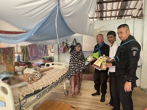 ทั้งนี้ หน่วยเฉพาะกิจกรมทหารพรานที่ 41 ยังได้มอบอุปกรณ์สำหรับช่วยเหลือผู้ป่วยติดเตียง (เบาะลม) เพื่อป้องกันแผลกดทับ จำนวน 1 ชุด และเครื่องอุปโภคบริโภค ณ บ้านเลขที่ 60 บ้านเกะรอ หมู่ที่ 1 ตำบลเกะรอ อำเภอรามัน จังหวัดยะลา