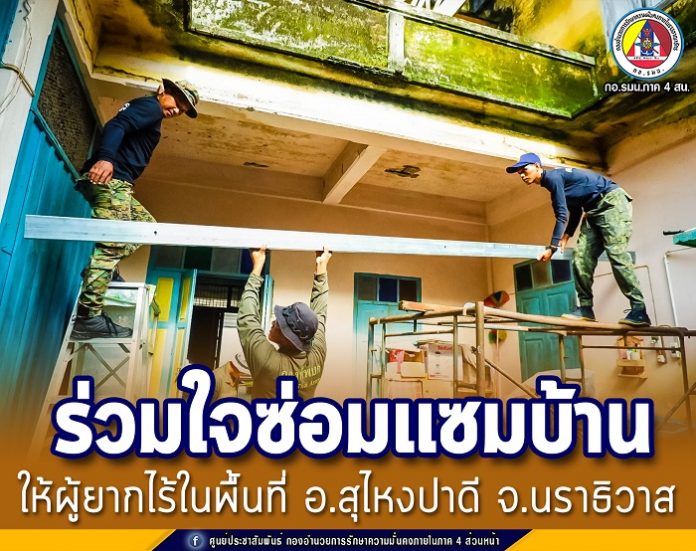 หน่วยเฉพาะกิจกรมทหารพรานที่ 48 นำโดย ร้อยโท วิรุจ นพรัตน์ ผู้บังคับกองร้อยทหารพรานที่ 4814 พร้อมชุดปฏิบัติการรักษาความปลอดภัยวัดรัตนานุภาพ และชุดช่าง ร่วมกับ ชุดคุ้มครองดำบลโต๊ะเด็ง กองกำลังประจำถิ่น ดำเนินการซ่อมแซมต่อเติมบ้านให้กับ นางอุไรวรรณ สิมศิริวงษ์ ผู้ยากไร้ ซึ่งอาศัยอยู่ที่บ้านเลขที่ 143/1 หมู่ที่ 1 บ้านโต๊ะเด็ง ตำบลโต๊ะเด็ง อำเภอสุไหงปาดี จังหวัดนราธิวาส ตามโครงการกิจกรรมพัฒนาชุมชนไทยพุทธให้มีความเข้มแข็ง ยั่งยืน ประจำปีงบประมาณ 2563