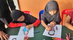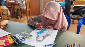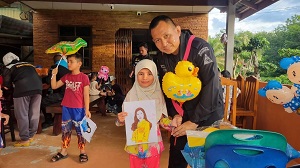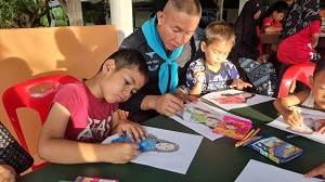 โดยพร้อมกันนี้หน่วยเฉพาะกิจกรมทหารพรานที่ 22 ได้จัดหาอุปกรณ์เครื่องเขียนวาดภาพระบายสี เเละลูกโป่งมาแจกจ่ายให้กับน้องๆที่ได้ร่วมกิจกรรม เพื่อเป็นการสร้างความสัมพันธ์อันดีต่อคนในชุมชนและเจ้าหน้าที่ของรัฐ