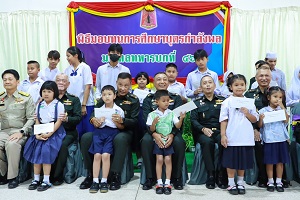 ในส่วนของพิธีมอบทุนการศึกษาแก่บุตรกำลังพลของมณฑลทหารบกที่ 46 ได้รับเกียรติจาก พลเอก ชาญประดิษฐ์ แสงนิล อดีตผู้บังคับการจังหวัดทหารบกปัตตานี เป็นประธานในพิธี ซึ่งการมอบทุนการศึกษาแก่บุตรกำลังพลนั้น เป็นดำริของผู้บังคับบัญชาในอดีต ที่ได้ร่วมกันบริจาคเงิน จัดตั้งกองทุนการศึกษาแก่บุตรข้าราชการและลูกจ้างในมณฑลทหารบกที่ 46 โดยมีวัตถุประสงค์ให้นำดอกเบี้ยจากกองทุนแบ่งเป็นทุนการศึกษาของบุตรกำลังพลที่มีผลการเรียนอยู่ในเกณฑ์ดี มีความประพฤติเรียบร้อย สำหรับปี 2567 คณะกรรมการได้ร่วมกันพิจารณาคัดเลือกบุตรของกำลังพลให้ได้รับทุนการศึกษาจำนวน 172 ทุน เป็นเงินทั้งสิ้น 255,900 บาท